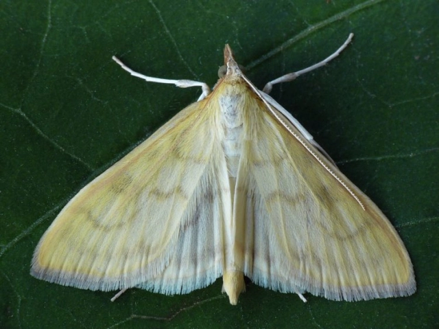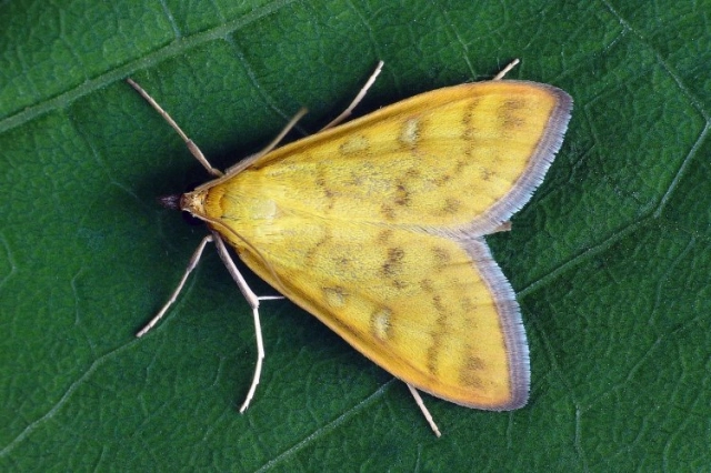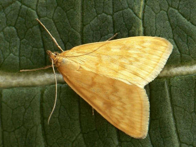 rozpětí 25–29 mm základní barva okrově žlutá, chybí tmavší skvrna při předním okraji předního křídla.